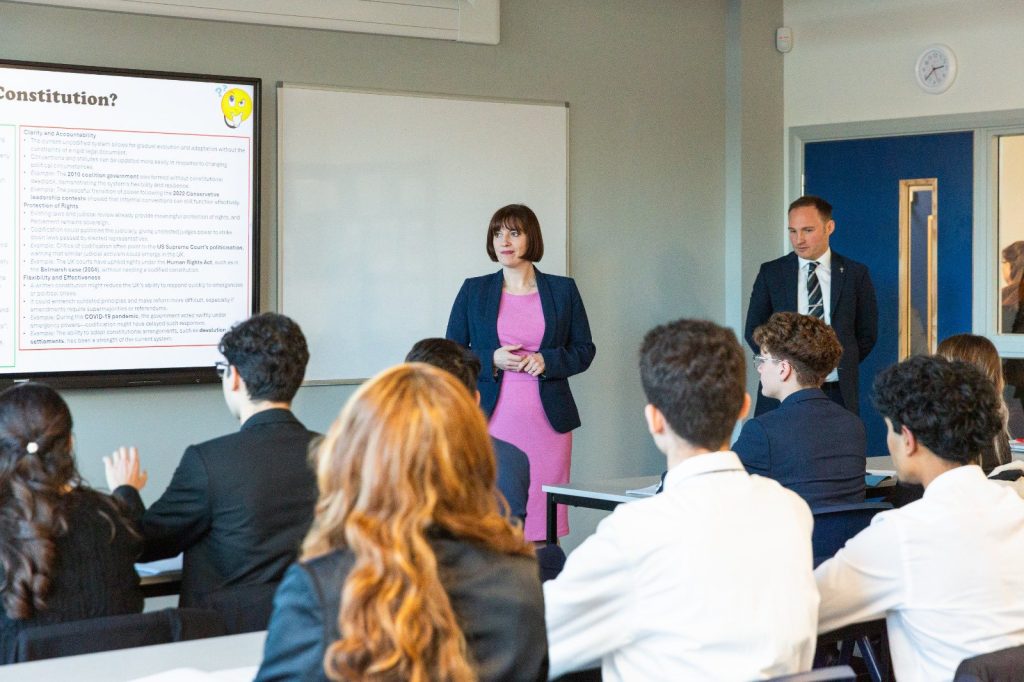Ms Phillipson addressed the audience warmly, acknowledging the hard work and dedication that had gone into the project, and she also took time to meet with the Year 12 Politics students and the Student Council.
